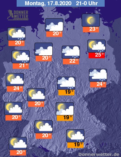 Am späteren Abend bleibt die Wolkendecke an Weser und Elbe zumeist geschlossen, sonst ist es meist locker bewölkt. An der Ostseeküste funkeln die Sterne auch mal von einem wolkenlosen Himmel. Schauer sind dann vor allem im Nordwesten, südöstlich der Weser sowie am Alpenrand zu erwarten.