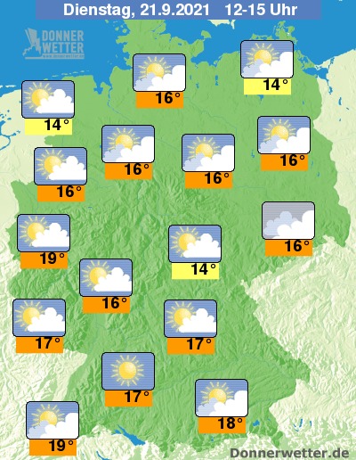 Heute Nachmittag ist es vor allem über der Nordosthälfte oft stark, zum Teil auch aufgelockert bewölkt. Im Süden und Westen ist es hingegen verbreitet heiter bis sonnig, gebietsweise ziehen jedoch auch einige Wolken durch. Bei Werten von 14 Grad an der Ostsee und etwa 19 Grad im Oberrheingraben bleibt es trocken.