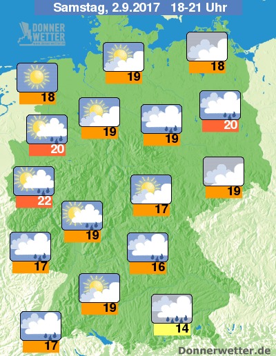 Heute Abend zeigt sich das Wetter über dem Westen und Norden weiterhin meist wechselhaft mit einem Mix aus Sonne und teils dichten Wolken und dazu einzelnen Schauern, sonst ist es meist stark und nur hier und da aufgelockert bewölkt, dazu bilden sich gebietsweise Schauer. Die Temperatur liegt bei 14 Grad in München und bis 22 Grad in Köln.
