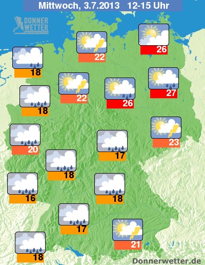 Ein Tiefausläufer beschert vor allem der Südwesthälfte einen grauen, nassen und kälteren Mittwoch. Im Nordosten hält sich zunächst noch wärmere Luft, hier entstehen aber Schauer und Gewitter.