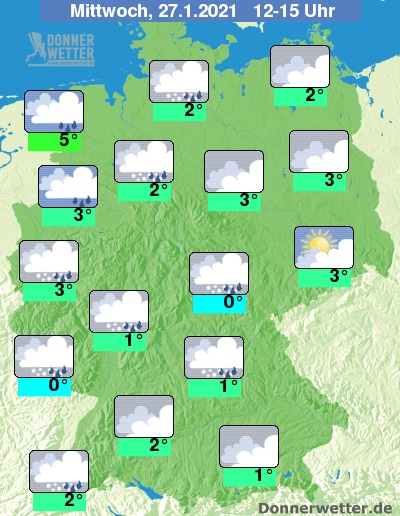 Am frühen Nachmittag breiten sich von Westen Niederschläge landeinwärts aus die zunächst als Schnee oder Schneeregen, bald jedoch im Nordwesten schon in Regen übergehen. Besonders in höheren Lagen muss mit Glätte gerechnet werden. Nach Osten hin bleibt es zunächst noch trocken mit größeren Wolkenlücken über Sachsen.