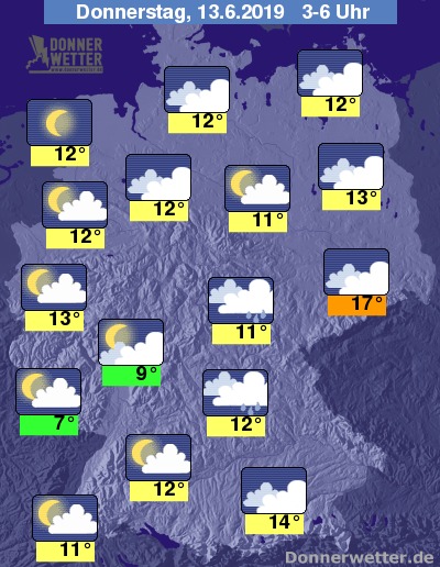 Bis zu den Frühstunden kühlt die Luft auf allgemein 9 bis 14 Grad ab, kühler wird es im Saarland und der Pfalz, milder bleibt es in Teilen Sachsens.