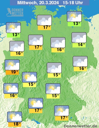 Heute Nachmittag zeigt sich der Himmel über der Nord- und Osthälfte häufiger stark bewölkt, vor allem im norddeutschen Tiefland kann es zeitweise auch etwas regnen. In den übrigen Landesteilen ist es heiter oder wolkig und es bleibt niederschlagsfrei.
