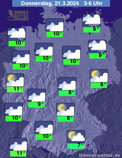 In der Nacht auf Donnerstag nimmt die Bewölkung dann auch über der Mitte und dem Süden zu. Im Norden muss weiterhin mit einzelnen Schauern gerechnet werden, in den übrigen Landesteilen bleibt es meist trocken.