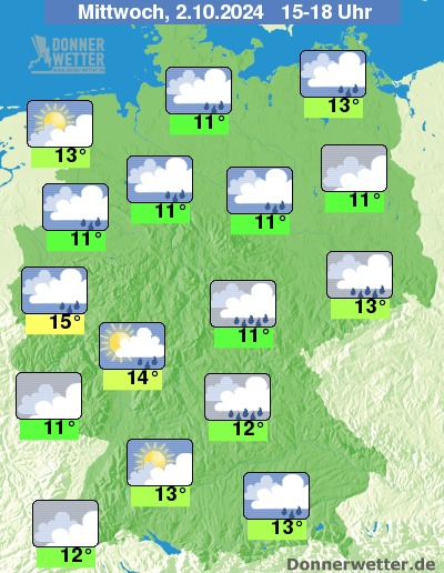 Am Mittwochnachmittag zeigt sich der Himmel verbreitet wechselnd bis stark bewölkt, Auflockerungen sind vor allem im Südwesten und an der Nordseeküste möglich. Hier bleibt es auch meist trocken, sonst fällt am Alpenrand sowie im Südosten zeitweise Regen, auch in den übrigen Landesteilen muss am Nachmittag zeitweise mit Schauern gerechnet werden.