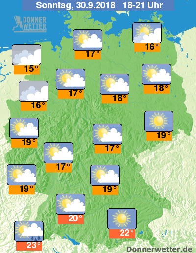 Heute Abend ziehen im Nordseeumfeld oft dichte Wolken heran, die jedoch noch kaum Regen bringen. Örtlich dichte Wolken sind auch rund um den Schwarzwald möglich, dazu besteht ein leichtes Schauer- und Gewitterrisiko, sonst ist es verbreitet heiter bis sonnig und es bleibt trocken. Die Temperatur liegt bei 15 Grad an der Nordsee und bis 23 Grad in Freiburg.