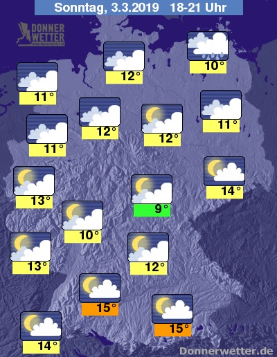 In der Nacht zum Montag ist es zunächst landesweit trocken, jedoch zum Großteil stark, hier und da auch etwas aufgelockert bewölkt. Im Laufe der Nacht zieht am Niederrhein und im Emsland Regen auf, der sich bis zum Morgen hin bis auf die Nordwesthälfte des Landes hin ausbreitet, sonst bleibt es noch trocken. Die Temperatur sinkt auf milde 10 Grad am Niederrhein und bis 5 Grad in Berchtesgaden.