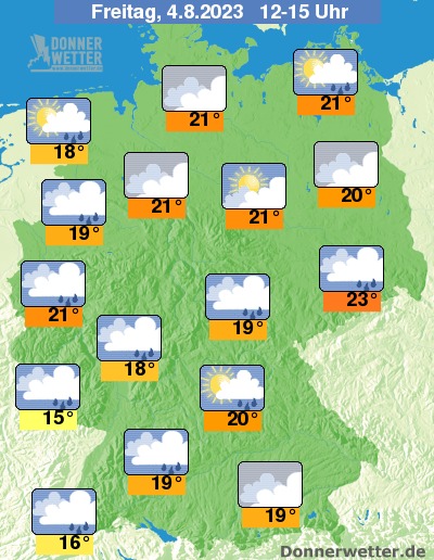 Heute Nachmittag zieht oft starke Bewölkung durch, dazwischen sind aber auch Auflockerungen und Aufheiterungen möglich. Es bilden sich einzelne Schauer, im Süden sind auch Gewitter möglich. Die Temperatur liegt bei 15 Grad am Pfälzer Wald und 23 Grad in der Lausitz.