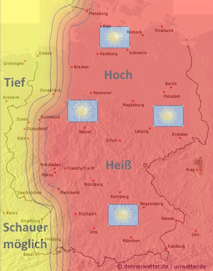 Zumindest die Westhälfte kommt am Donnerstag nicht mehr in den Genuss von sonnig-warmem Maiwetter. Eine Wetterfront, die sich im Tagesverlauf ostwärts bewegt, beendet dann das Sommerintermezzo so schnell wie es gekommen ist.