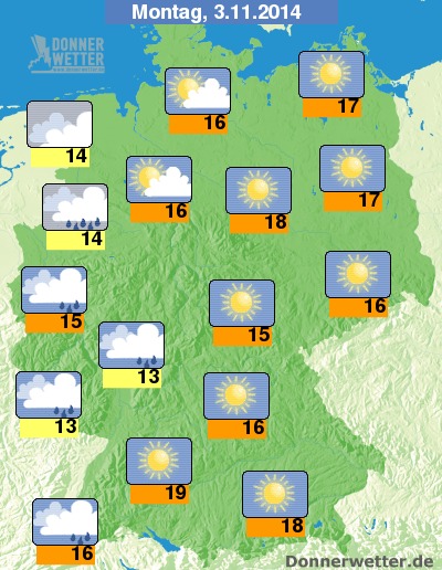 Am längsten Freude am schönen Wetter und den sehr milden Temperaturen hat der Osten, bzw. Südosten des Landes. Von Westen her ziehen ab Montag Tiefausläufer durch, die dem Westen und Südwesten Deutschlands dann bereits Schauer bringen. Die Temperaturen am Montag liegen bei Höchstwerten um 13 bis 19 Grad C.