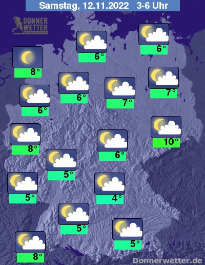 In der kommenden Nacht zeigt sich der Himmel über Deutschland verbreitet locker bewölkt und nicht selten auch sternenklar. Stellenweise können sich jedoch auch dichtere Wolken halten. Es bleibt trocken bei Tiefstwerten von 10 Grad in Dresden und 4 Grad in Nürnberg.