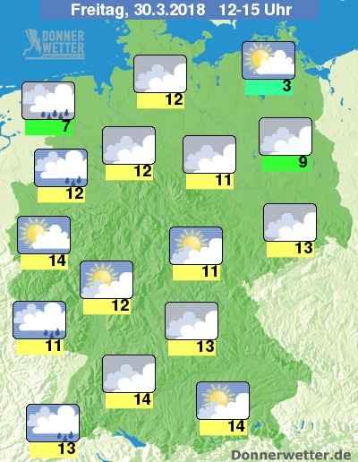 Zuvor liegen die Höchstwerte bei kühlen 4 Grad auf Rügen und bei bis zu 15 Grad entlang der Donau.