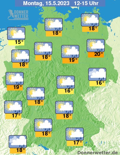 Heute Nachmittag zeigt sich der Himmel im Umfeld der Küsten sowie im äußersten Westen teils heiter, teils wolkig und es bleibt zunnächst noch meist trocken. In den übrigen Landesteilen überwiegt wechselnde bis starke Bewölkung mit temporären Aufheiterungen, dabei muss immer wieder mit Schauern und einzelnen Gewittern gerechnet werden.