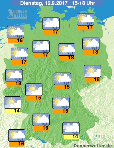 Wenig Bewegung kommt in die Temperaturen, sie liegen am Abend bei Werten um 14 Grad C am Alpenrand und 18 Grad C in der Lausitz.