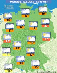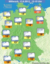 Aktuell lenken immer neue Tiefdruckgebiete immer wieder feuchtere und kühlere Luftmassen über Deutschland hinweg. Am Dienstag gibt es deshalb verbreitet immer wieder Schauer, am bayerischen Alpenrand kann es auch lang anhaltend und ergiebig regnen, so dass stellenweise Überflutungen möglich sind. Die Temperaturen erreichen meist um 17 bis 19 Grad, nur in Brandenburg und Sachsen wird es wärmer, an der Oder sind 23/24 Grad möglich.