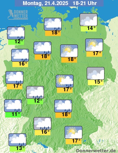 Heute Abend zeigen sich teilweise Auflockerungen, jedoch zieht häufig starke Bewölkung durch, dabei können sich Schauer bilden. Die Temperatur liegt bei 11 Grad am Pfälzer Wald und rund 18 Grad in der Magdeburger Börde.