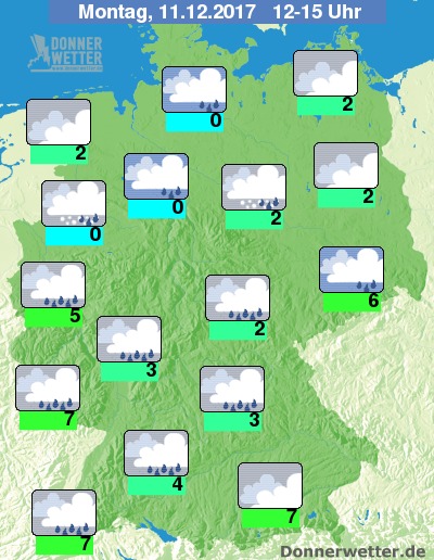 Heute Nachmittag verbleibt Deutschland unter einer kompakten Wolkendecke, dabei bleibt es einzig im Südosten und im Umfeld der Ostsee trocken, sonst fällt dagegen immer wieder Regen. Nach Norden hin fällt in kälterer Luft auch noch oft Schnee, dabei besteht Glättegefahr! Die Temperatur liegt bei 0 bis 7 Grad.