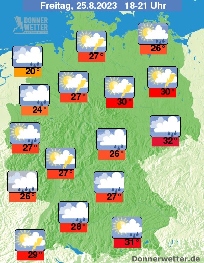 In den Abendstunden bleibt der Himmel über weiten Landesteilen wechselnd oder stark bewölkt und weiterhin muss mit teils kräftigen Schauern und Gewittern gerechnet werden. Lokal mit Unwetterpotential.