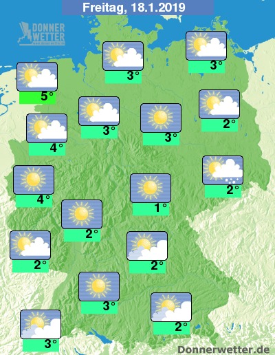 Im Erzgebirge, dem Bayrischen Wald und an den Alpen halten sich zunächst noch einige Schneeschauerwolken. Im übrigen Land gibt es eine freundliche Mischung aus Sonne und lockeren Wolken. Gebietsweise scheint die Sonne auch längere Zeit und es sollte In der Regel trocken bleiben.