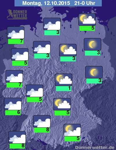 In der Nacht zum Dienstag bleibt der Himmel über Deutschland verbreitet stark bewölkt oder bedeckt. Einige Auflockerungen zeigen sich vor allem in den östlichsten Landesteilen sowie im Südwesten, wo der Himmel gebietsweise sogar aufklart. Im äußeren Südosten ist hier und da Regen möglich, sonst bleibt es aber trocken. Die Temperatur sinkt auf 6 Grad an der Nordsee und bis auf frostige -1 Grad im Altenburger Land.
