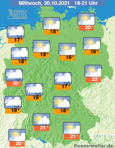 Heute Abend zeigt sich der Süden und Osten noch teils locker bis aufgelockert bewölkt und weitgehend trocken. Im großen Rest des Landes ist es hingegen meist stark und nur noch teils aufgelockert bewölkt, dabei bilden sich gebietsweise Schauer. Die Temperatur liegt bei 17 Grad in Jena und bis 22 Grad in Dresden. Es weht ein starker, oft auch stürmischer Wind, an den Küsten herrscht verbreitet Sturm.