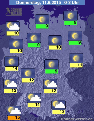 Im weiteren Nachtverlauf zeigt sich der Himmel über weiten Teilen Deutschland klar oder nur locker bewölkt.