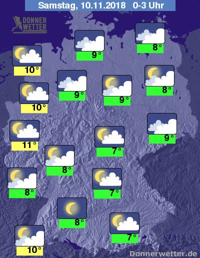 In der Nacht zeigt sich der Himmel zunächst überwiegend locker oder aufgelockert bewölkt, im Norden und Osten bleibt es regional auch bedeckt. Im weiteren Verlauf lockern die Wolken weiter auf, in der Südosthälfte zeigen sich auch häufig die Sterne. Schauer sind in der Nacht nicht zu erwarten.
