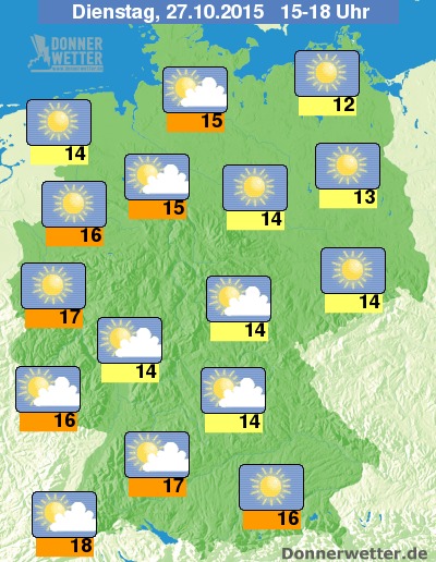 Heute Nachmittag scheint verbreitet die Sonne von einem zumeist wolkenlosen Himmel, hier und da ziehen aber auch einige Wolken durch. Es bleibt landesweit trocken bei Höchstwerten von 12 Grad in Vorpommern und rund 18 Grad im Oberrheingraben.
