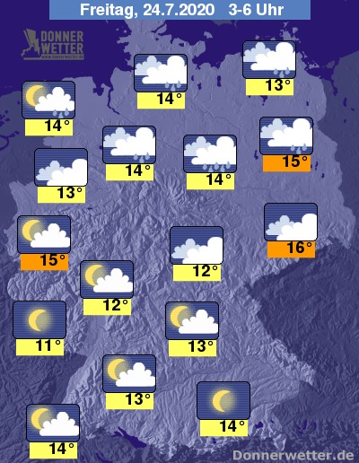 In der Nacht zum Freitag zieht sich der Himmel über der Nordhälfte weitgehend zu und es fällt zeitweise Regen. Weiter nach Süden hin bleibt es dagegen bei meist lockerer, teils auch wechselnder bis aufgelockerter Bewölkung trocken. Die Temperatur sinkt auf 16 Grad in der Lausitz und bis 11 Grad im Saargau.