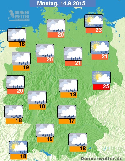 Am Montag ist es im Südosten, Osten und Nordosten anfangs noch teils heiter und trocken. Ansonsten ziehen von Westen kommend jedoch überwiegend dichte Wolken übers Land und es fällt wiederholt, oft schauerartiger und teils anhaltender und ergiebiger Regen. Hier und da sind auch kurze Gewitter möglich. Die Temperatur steigt auf 17 Grad in Mittelfranken und bis auf warme 25 Grad an der Neiße.