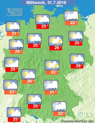 Auch am Mittwoch sind Schauer keine Ausnahme, man muss teils auch mit stärkeren Schauern gerade an der Ostseeküste und im Süden um Oberfranken und Oberbayern rechnen. Zudem besteht ein Gewitterrisiko. Die Sonne zeigt sich im Tagesverlauf auch mal. Die Temperaturen erreichen 21 Grad im Ostfriesland und 28 Grad im Erzgebirge.