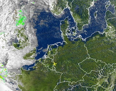 Das Satellitenbild zeigt ein wolkenloses Deutschland. Mehr Bilder finden Sie unter dem Punkt Satellitenbilder.