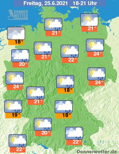Heute Abend sind anfangs vor allem über der Südosthälfte des Landes noch einzelne Schauer und selten auch Gewitter möglich. Die Niederschlags- und übrige Gewitteraktivität lässt jedoch immer weiter nach und häufig ist es dann nur noch locker bis aufgelockert bewölkt. Die Temperatur liegt bei 18 Grad in Bremerhaven und bis 24 Grad in Dresden.