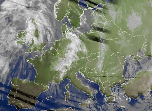 Auf dem Satellitenbild von heute Morgen sehen wir ein kompaktes Wolkenband über der Südosthälfte Deutschlands, hierbei handelt es sich um einen Ausläufer von Tief "Judith" über dem Atlantik, der hier für zeitweilige Niederschläge sorgte, aber auch im übrigen Deutschland war und ist es weiterhin meist dicht bewölkt oder trüb und dazu auch teils nass.