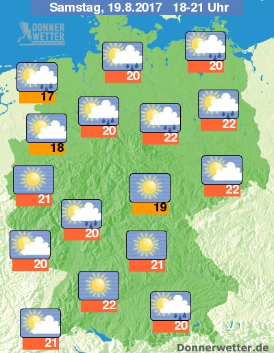 Heute Abend ist es über dem Norden und dem Südosten Deutschlands teils aufgelockert, teils stark bewölkt, dabei bilden sich hier einzelne Schauer. Im großen Rest der Republik ist es hingegen überwiegend heiter oder sonnig und nur lokal auch mal stärker bewölkt, dazu bleibt es weitgehend trocken. Die Temperatur liegt bei etwa 17 Grad in Cuxhaven und bis 22 Grad in Berlin.
