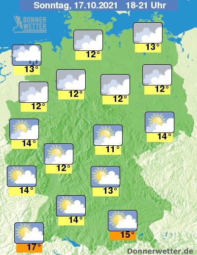 Heute Abend ziehen über den Norden dichte Wolken hinweg, dabei sind jedoch nur vereinzelt, im Nordseeumfeld allerdings gebietsweise Schauer möglich. Über der breiten Landesmitte ist es auch oft stark, teils jedoch auch aufgelockert bewölkt, dabei bleibt es trocken. Im Süden ist es weiterhin meist heiter, dabei bleibt es ebenfalls trocken. Die Temperatur liegt bei 11 Grad in Jena und bis zu 17 Grad in Freiburg.