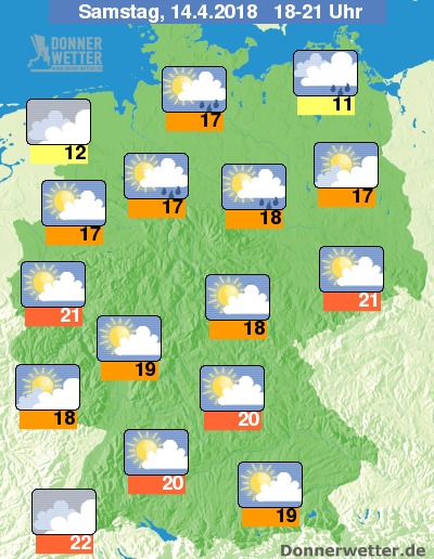 Heute Abend sind über dem Norden weitere Schauer und örtlich auch Gewitter möglich. Von der breiten Landesmitte bis nach Süden ist es überwiegend heiter, hier und da können auch mal mehr Wolken durchziehen, dabei bleibt es aber meist trocken. Die Temperatur liegt bei 11 Grad auf Rügen und bis 22 Grad in Freiburg.
