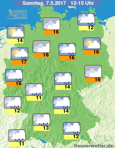 Heute Nachmittag ziehen über weite Landesteile dichte Wolken hinweg, dabei bilden sich bevorzut über der Südwesthälfte häufig Schauer, aber auch im Norden und Osten sind bei teils dichten Wolken einzelne Schauer möglich, dazwischen kann sich hier jedoch auch immer wieder die Sonne zeigen. Die Temperatur liegt bei 11 bis 17 Grad.