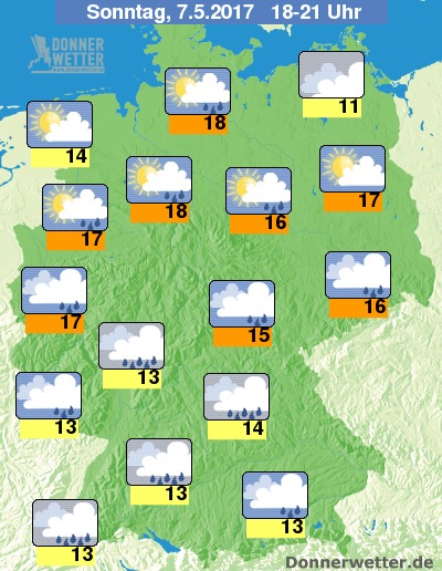 Heute Abend gibt es im Norden einen Mix aus Sonne und teils dichten Wolken, dabei sind einzelne Schauer möglich. Weiter nach Süden hin bleibt die Wolkendecke überwiegend verschlossen und es bilden sich immer wieder, teils auch kräftige Schauer. Die Temperatur liegt bei 11 bis 17 Grad.