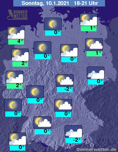 Heute Abend zeigt sich der Himmel verbreitet sternenklar oder nur locker bewölkt. Dichte Wolken halten sich im Küstenumfeld und im Alpenvorland, dabei sind an den Alpen einzelne Flocken, im Küstenumfeld einige Tropfen möglich. Die Temperatur liegt ebi -2 Grad im Thüringer Becken und bis 4 Grad an der Nordsee.
