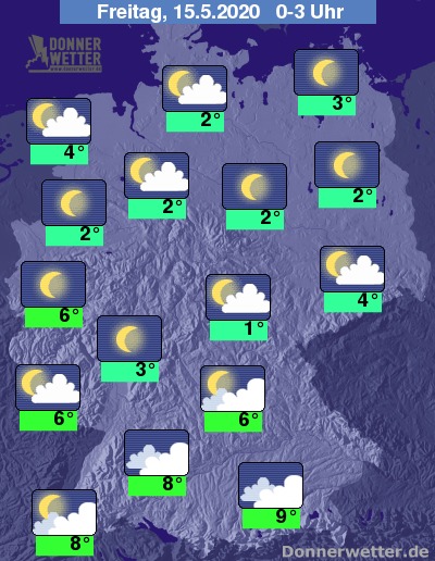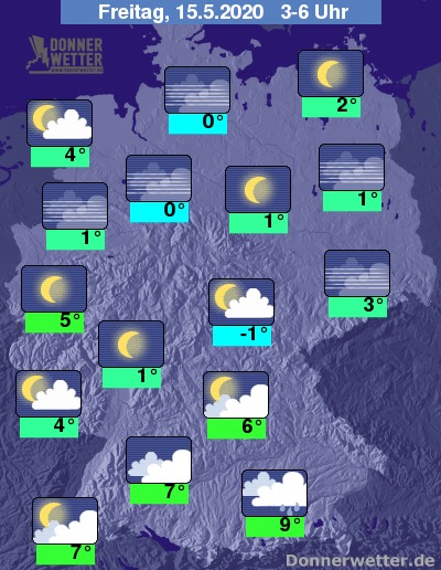 Tiefstwerte um 9 bis -1 Grad in der Nacht.