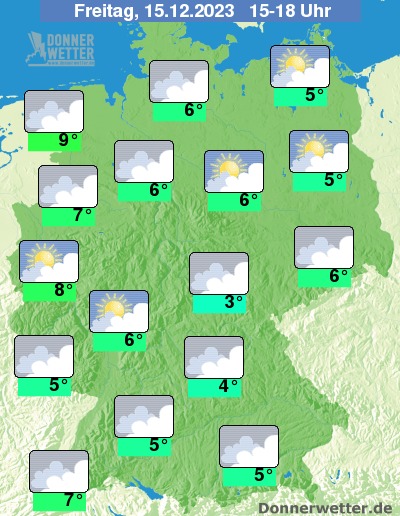 Die Temperaturen erreichen am Nachmittag Werte um 3 Grad in Erfurt und 9 Grad in Ostfriesland.