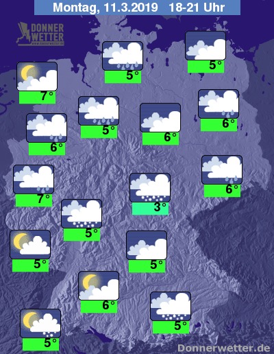 In den Abendstunden lockern die Wolken zunächst im äußersten Nordwesten sowie in der Südwesthälfte gebietsweise auf. Im weiteren Verlauf zeigen sich Wolkenlücken dann auch in in vielen anderen Landesteilen, im Küstenumfeld sowie im Südwesten kann es auch aufklaren. Immer wieder muss in den kommenden Stunden mit Niederschlägen gerechnet werden, die in der Nordhälfte meist als Regen, im Süden auch als Schneeregen oder Schnee fallen. Am späten Abend sind dann nur regional Schauer zu erwarten.