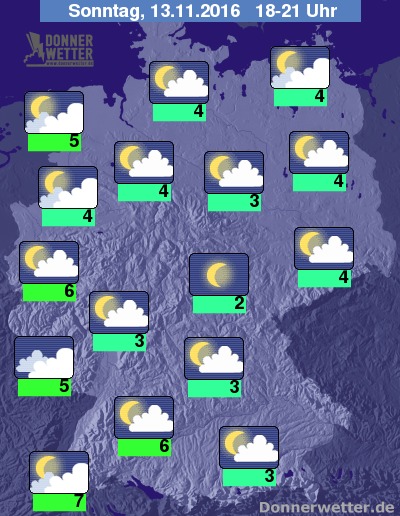 Heute Nachmittag halten sich vor allem in den westlichen Landesteilen und im Alpenvorland oft dichte Wolken oder es ist neblig-trüb, sonst zeigt sich zwischen den Wolken aber auch häufig die Sonne und gebietsweise ist es sogar sonnig, zudem bleibt es überall trocken. Die Temperatur liegt bei 2 Grad in Mittelfranken und um 7 Grad im Breisgau.