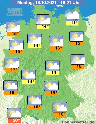 Heute Abend ist es über der Nordhälfte Deutschlands teils stark, teils aufgelockert bewölkt. Im Nordosten und Osten ist es weitgehend dicht bewölkt. Im übrigen Bundesgebiet ist es auch verbreitet locker bis wechselnd bewölkt. Im Ostseeumfeld ist hier und da noch Regen möglich, sonst bleibt es aber überall trocken bei Werten von 11 Grad in Stralsund und bis zu 20 Grad in Freiburg.