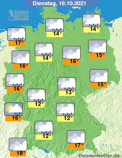 Am Dienstag zeigt sich das Wetter verbreitet stark bewölkt oder bedeckt, dabei fällt gebietsweise etwas Regen. Im Südwesten lockert die Bewölkung am Nachmittag wieder verbreitet auf, dann bleibt es hier weitgehend trocken. Die Temperatur steigt auf 12 Grad in Mittelfranken und bis 18 Grad am Oberrhein.