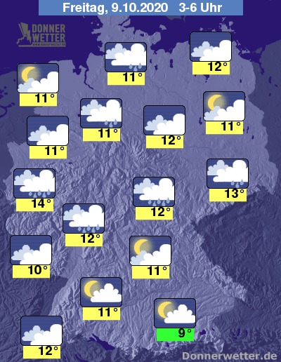 Der Freitag startet über weiten Landesteilen mit einer meist geschlossenen Wolkendecke, Lichtblicke gibt es in den Frühstunden vor allem an der Nordseeküste sowie entlang der Donau. Vor allem auf einem Streifen zwischen dem Rheinland und dem Zittauer Gebirge fällt zeitweise Regen, sonst bleibt es überwiegend trocken.