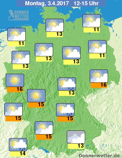 Heute Nachmittag zeigt sich das Wetter zumeist von seiner freundlichen Seite. Über der Nordwesthälfte und auch im Osten scheint bei überwiegend nur lockerer Bewölkung häufig die Sonne. Nach Nordosten hin können sich hier und da auch mal dichtere Wolken halten, dabei bleibt es aber trocken. Im Süden und Südosten ziehen hingegen oft dichte Wolken durch, die hier für einzelne Schauer und örtliche Gewitter sorgen können. Die Temperatur steigt auf 11 Grad in Vorpommern und bis 16 Grad in Dresden.