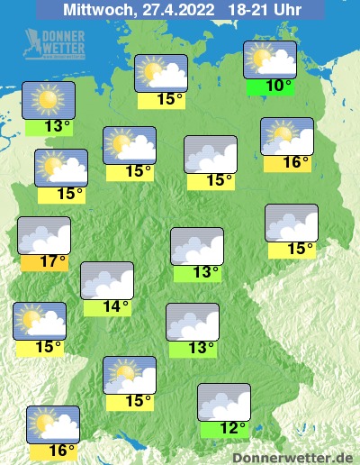 Heute Abend halten sich über der breiten Landesmitte und auch über Bayern oft dichte Wolken, sonst ist es hingegen meist heiter oder wechselnd bewölkt. Es bleibt trocken bei 10 Grad in Stralsund und etwa 17 Grad in Köln.