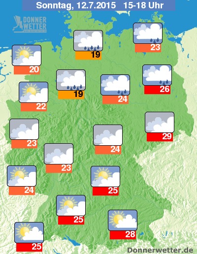 Heute Nachmittag ziehen über den Norden, aber auch über die breite Mitte Deutschlands meist dichte Wolken, dabei fällt vor allem im Norden zeitweise Regen. In Süddeutschland ist es oft heiter und sonst meist aufgelockert bewölkt, hier bleibt es weitgehend trocken. Am Alpenrand besteht jedoch ein leichtes Schauer- und Gewitterrisiko. Die Temperatur steigt auf 20 Grad in Ostfriesland und bis 29 Grad in Dresden.